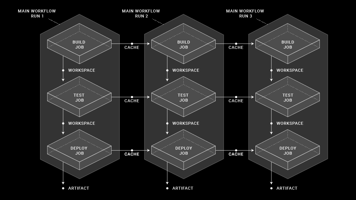 Simply stated, a Step is a single command to be run as part of your build and test process. It is the unit of work of our CI system. A Job is a collection of steps executed sequentially in a specific environment. A Workflow is a collection of jobs executed either sequentially or in parallel based on more complex logic.