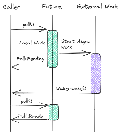 it hasn’t fired yet, we return Poll::Pending. This is the pattern we